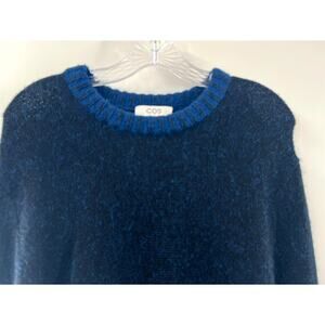 Cos Women's Blue Wool Long Sleeve Crew Neck Pullover Sweaters Size Medium NWT