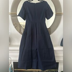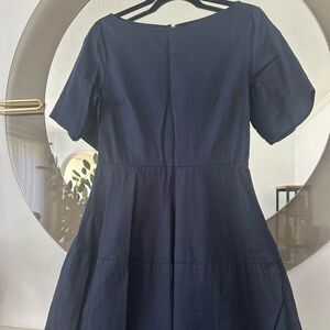 Cos Navy Blue Fit And Flare Dress With Side Pockets Size 34