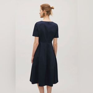 COS Navy Blue Fit And Flare Dress With Side Pockets