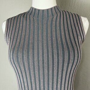 Cos Sleeveless Sweater Tank Ribbed Knit Vest Mock Neck Gray Pink Size Small NEW