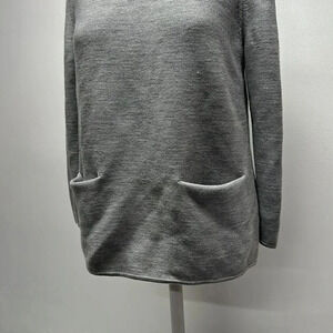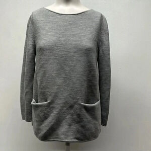 Cos Sweater Long Sleeve Top Blouse Pure Wool Boat Neck Knit Pockets Gray Small
