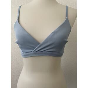 Cos Swim Bikini Top Pullover V Neck Wireless Blue Swimwear FLAW