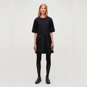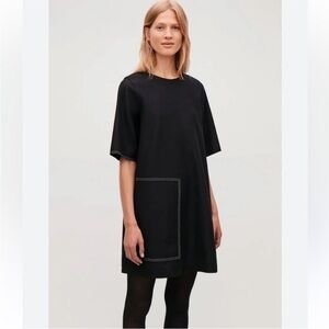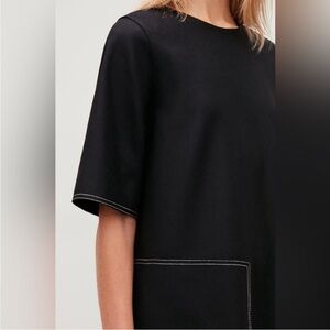 Cos topstitched black wool/cashmere mod short sleeve dress size 2