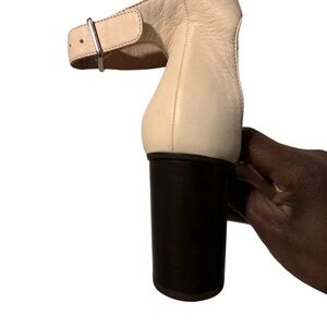 Cos white leather block heel 3.5 inches double knotted elegant chic and unique Brand: Cos