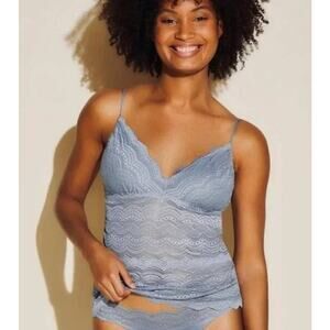 Cosabella Ceylon Curvy Collection Lace Scalloped Edge Blue Camisole - M