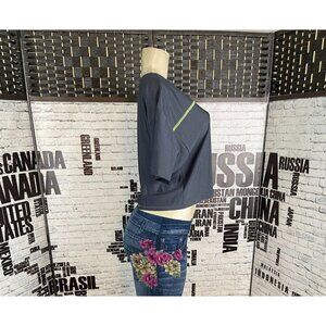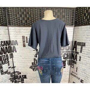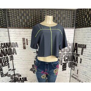 Cosabella L Charcoal Gray Neon Stitch Detail Textured Short Sleeve Crop Top