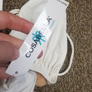 This sexy one piece bathing suit from Cosabella Mare has a deep plunge and cutouts. Never worn -NWT. Picture of the pink suit for style/shape reference only, color is white. Size L.