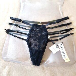 Cosabella Tie Me Down Highwaist Lace G String Thong Panty L/XL Black Sexy NWT $60