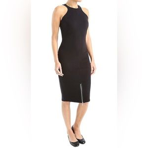 Bodycon Cosabella form fitted midi length ribbed cotton dress in black with zipper slit in front, halter neck style, sleeveless, size women’s medium.100% Cotton, Hand Wash Only. Embellished with exposed silver zippers for a glimpse of hard edge. Fitted silhouette with high neckline. Effortless yet sexy knee-length dress in soft wide rib pima cotton. Preowned in like new condition. PLEASE compare provided measurements with an item you already own to ensure a proper fit. Open to offers.