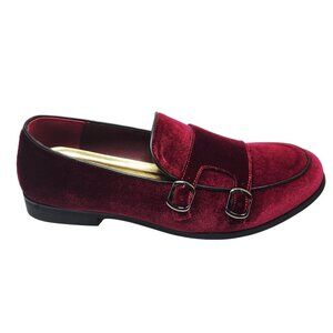 Cosidram Mens Red Velvet Double Monk Strap Loafers dress Shoes Size 8