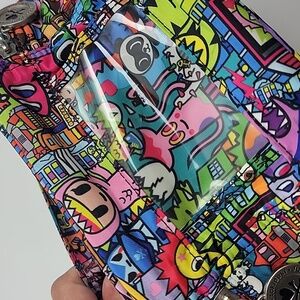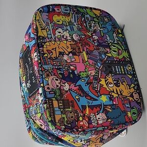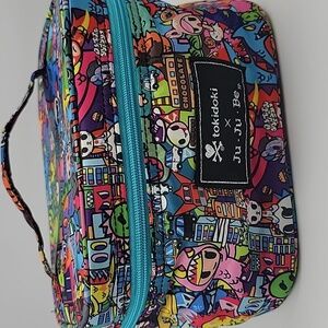 Vibrant Tokidoki x Ju-Ju-Be cosmetic bag with playful characters. Features a multicolor design with a convenient handle.