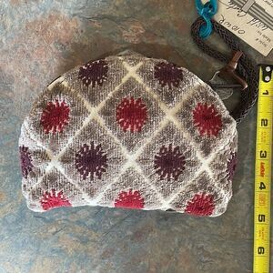 This is handmade in Cambridge, Maine. It is made with rescued fabric samples and designed into a one of a kind little bag that could be used for cosmetics, cash, or whatever else. It’s new with tags. Smoke free home.