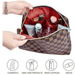 Cosmetic Bag Leather Large Checkered 2 Pack Large Capacity Travel Cosmetic Bag
