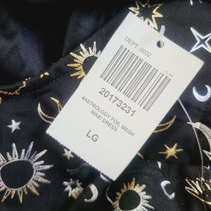 Cosmic Aura Astrology Celestial Stars Moon Foil Mesh Maxi Dress Size L Black Gol