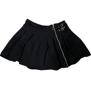 Cosmic Aura Black Punk Skater Pleated Goth Mini Skirt With Zipper & Buckle XL