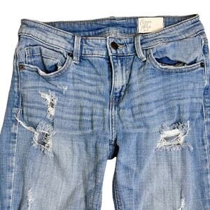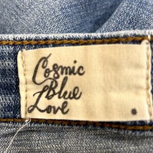 Cosmic Blue Love Distressed Light Wash Straight Leg Jeans C130STO. Cotton Spandex Blend. Size 27. Measurements taken laying flat: