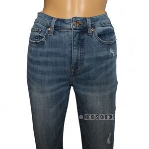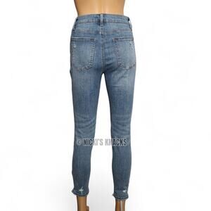 Cosmic Blue Love High Rise Distressed Ankle Skinny Jeans Frayed Hem Size 28P
