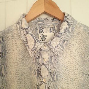 Cosmic Blue Love Kyle Button Detail Top Popover Snake Print Cream Gray Size M