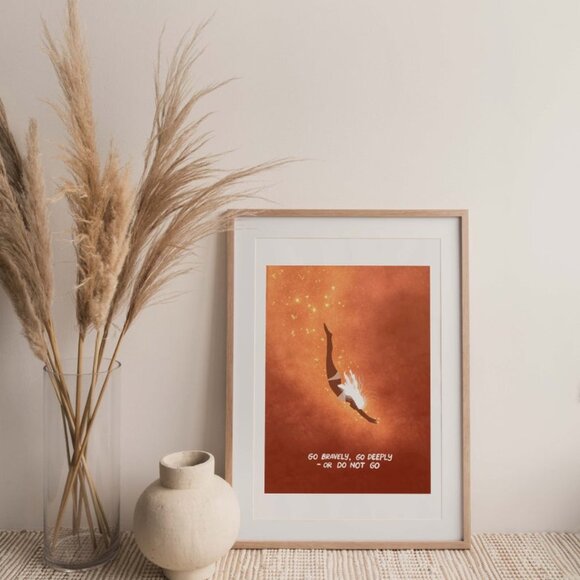 Embrace the unknown with the "COSMIC DIVER" Art Print. This stunning piece of artwork invites you to dive into adventure, making it a perfect addition to any room in your home. Whether you're an adventurer at heart or simply love cosmic imagery, this print captures the beauty of exploration and the thrill of the unknown.