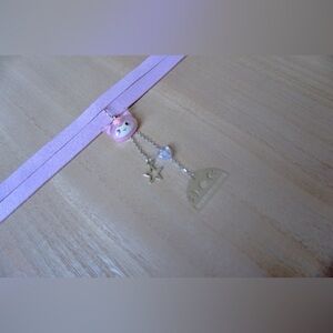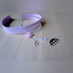 sexy cute adorable baby doll kuromi triple moon cosmic domain star dangle colorful iridescent heart beaded lariat multilayer purple lavender soft flat cord retro choker necklace