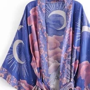 Cosmic Galaxy Moon Boho Short Kimono Coverup Robe