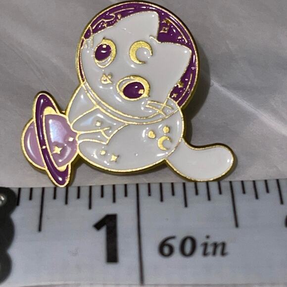 Cosmic Mystic Purple Saturn Moon Cat Pin Brooch