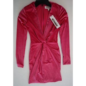 Cosmo Dress the Population Women's Sz S Fuchsia Aidan Twist Plunge Velvet Dress
