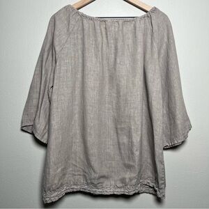 Cosmo Women 100% Linen Top Small Tan Oversized Coastal Lagenlook Tie Neck Scoop