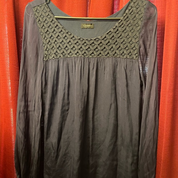 Cosmo-Blue, Pattern/Shear Sleeves-Size:Small, Used good condition, silk, Navy Blue