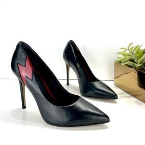 Cosmoparis Stiletto Heel Pump Sz 8 Black & Red Leather Closed Pointed Toe Padded