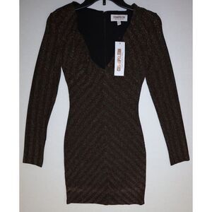 Cosmopolitan Dress The Population Sz XS Copper Gold Maya Metallic Stripe Mini Dress