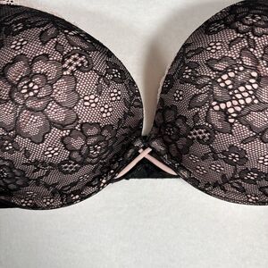 Cosmopolitan Ego Elevator Underwire Padded Bra Size 36D Black Lace Over Pink