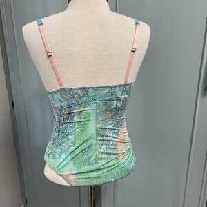 Excellent condition womens size Medium watercolor print, snaps at the crotch, adjustable straps