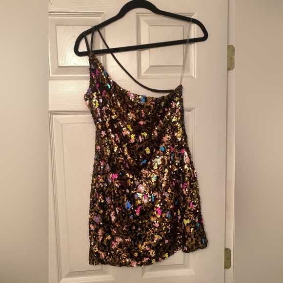 Cosmopolitan mini Dress The Population Y2K Leopard Rainbow Sequin ,sexy and fun