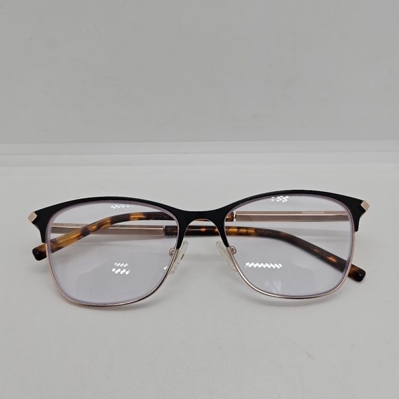 Eyeglasses with tortoiseshell pattern on the frames and rose gold arms. In good used condition. For frames only - you can get your own prescription put into them.