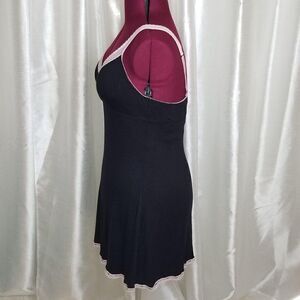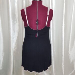 Black color with soft pink contrast lace, v-neckline, adjustable straps, keyhole on back, pull-over, pink lace hem, soft, comfortable material. Great condition.