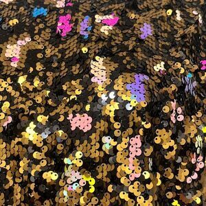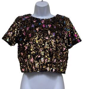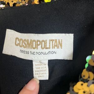 Cosmopolitan Dress the Population Womens Small Sequin Crop Top Lined Black Gold Multicolor Party Cruise Y2K