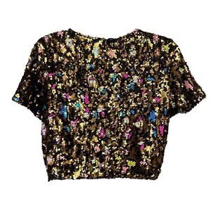 Cosmopolitan Dress the Population Small Gold Multicolor Sequin Crop Top Party
