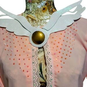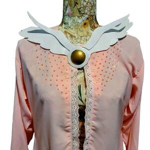 Cosplay Anime Pink Sparkly Jeweled Lace Hankerchief Hem White Wing Collar Robe in EXCELLENT condition with Pockets! Snaps in front. See photos for details.