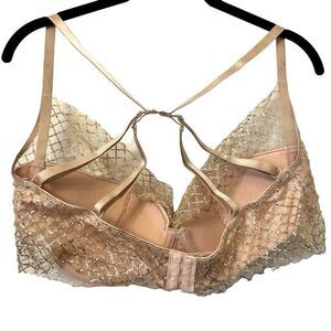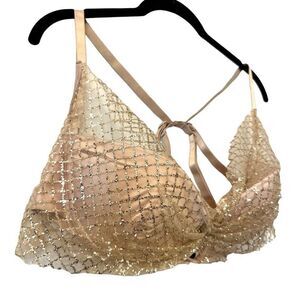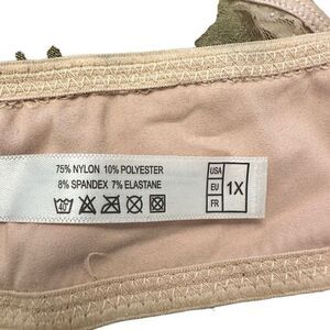 Oh La la Cheri Glittered Sheer Overlay Bra Garter & Zip-up Short 3Pc Lingerie Set Tan Gold 1X