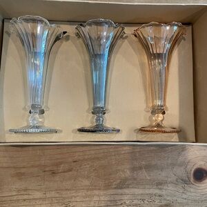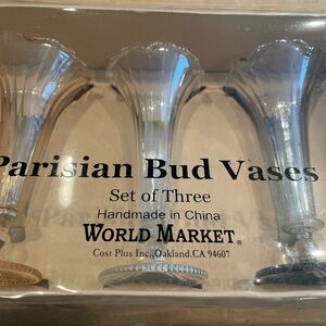 Cost Plus World Market 3 Parisian Bud Vases beveled glass blue peach white