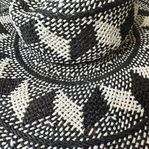 Cost Plus World Market Mosaic Geo Pattern Woven Sunburst 6” Brim Summer Sunhat