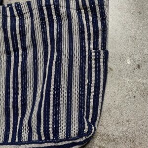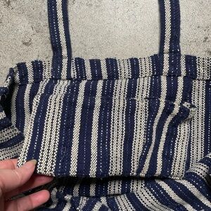 Cost Plus World Market Navy Blue and Silver Stripe cotton boho tote bag.