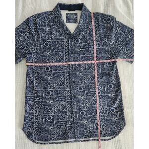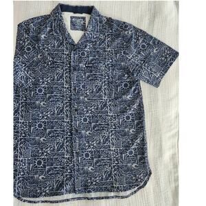 Costa Camp Tech Button Shirt XXL Tiki Print Navy Performance Moisture Wicking