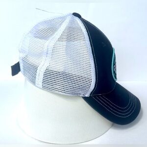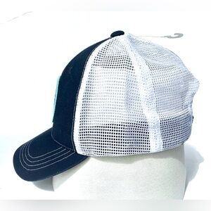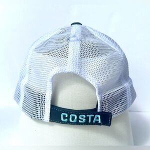 New Costa Del Mar Ocearch "Don't fear the Fin" Mesh Back Adjustable Trucker Hat. Blue and White. Still has plastic merchandise hang hook tag.
