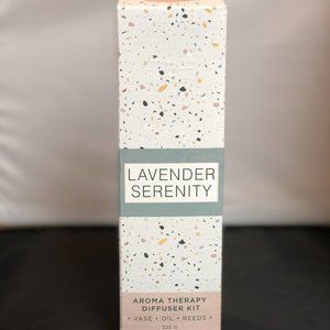 NEW UNOPENED! Lavender essential oil aromatherapy This 3-piece set includes a ceramic vase, serenity diffuser oil and reeds.