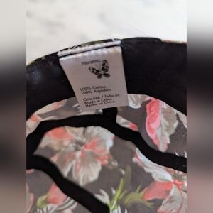 Hat bought from a tourism shop in Costa Rica. Floral pattern on black background.