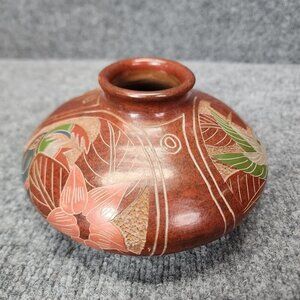 Costa Rica Toucan Hummingbird butterfly Ceramic Vase Folk Art Pottery