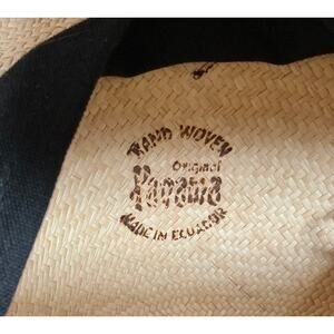 Authentic Panama hat from Costa y Soler and made in Spain. This is a traditional, handwoven hat made from the straw of the toquilla palm. The rounded crown has a depth of approximately 5” with the brim 3 1/2” and narrow ribbon with small medallion. The circumference inside the crown is 22” which makes this hat a size M or size 7. Measurements and size are approximate. Excellent pre-owned condition