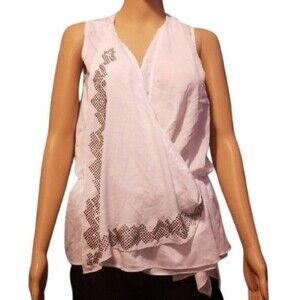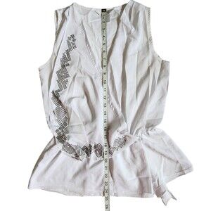 White layered front elastic waist 100% polyester Costa Blanca (Urban Outfitters) small top. Brass Aztec-type embellishments on the front. Sleeveless.